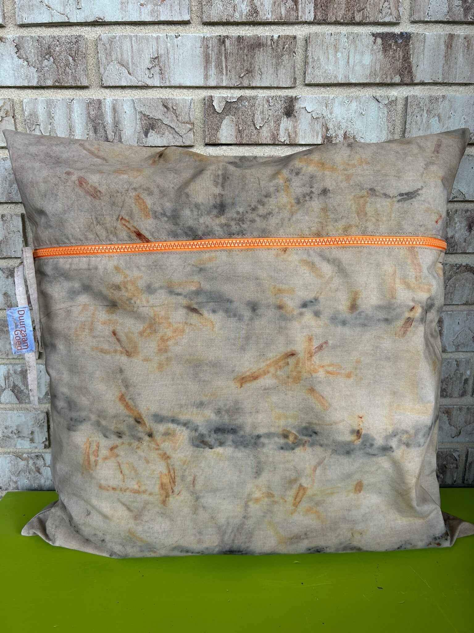 Kussenhoes 50x50 cm met blauwhout en schimmelpigment € 39,95