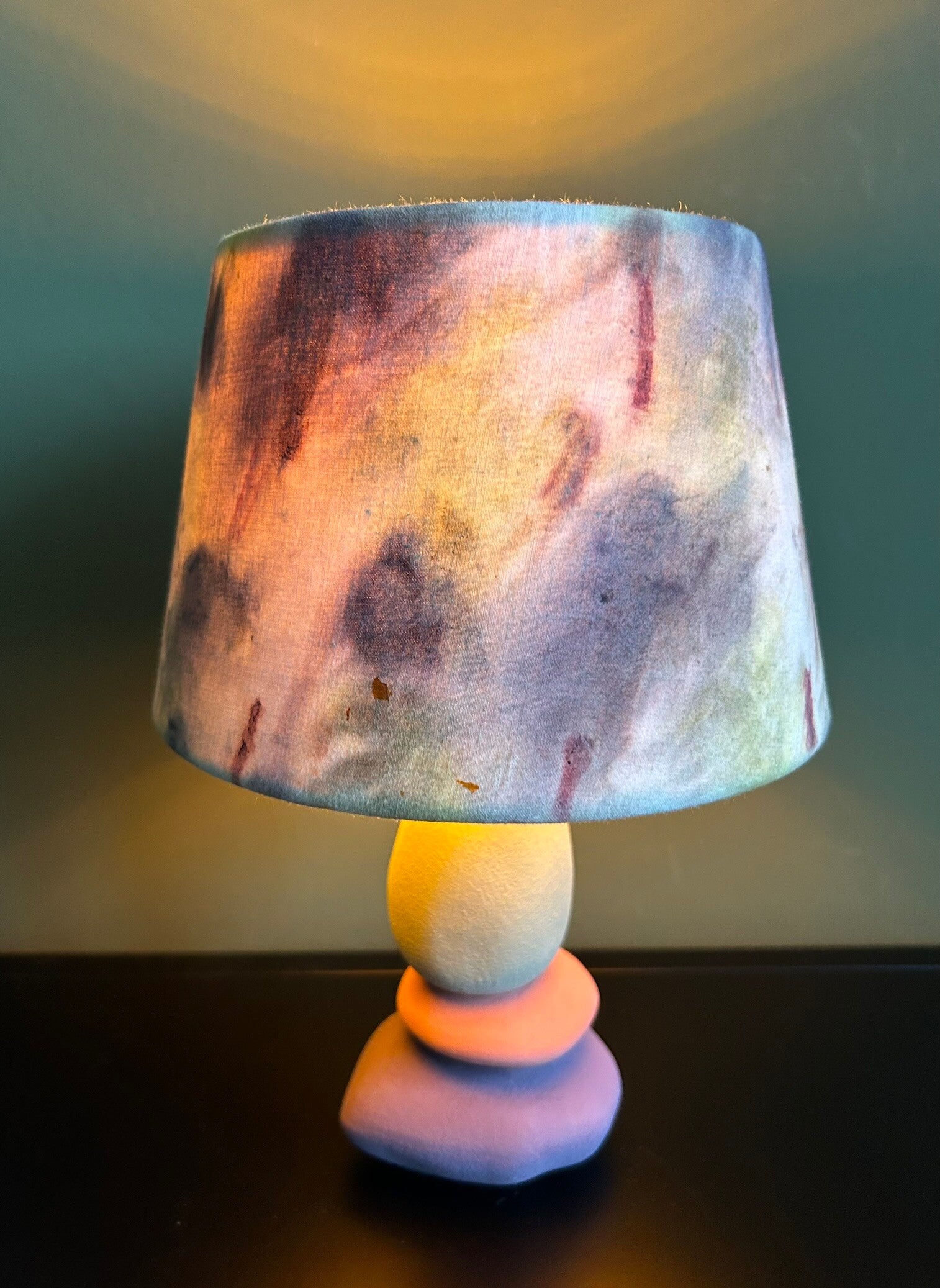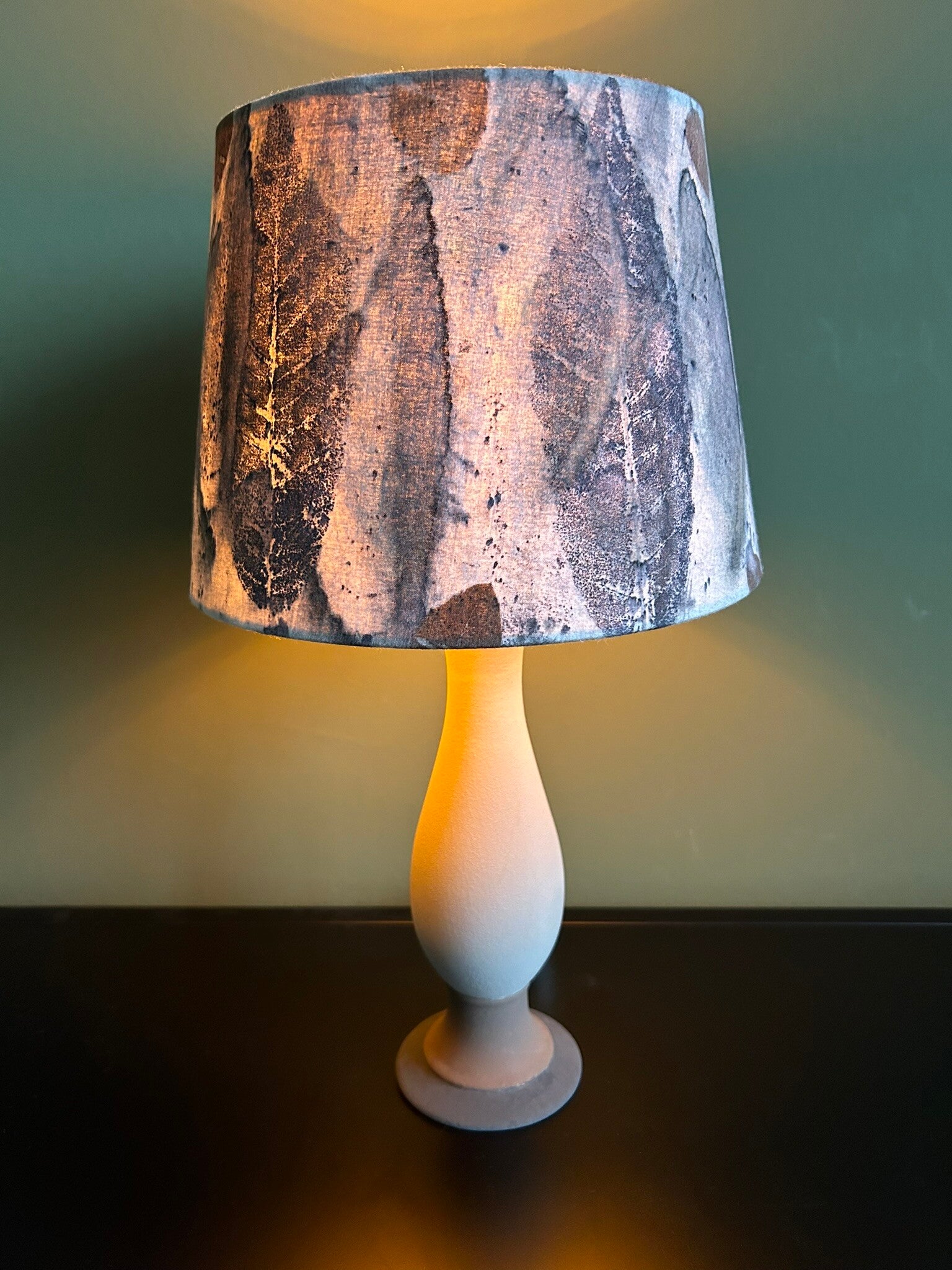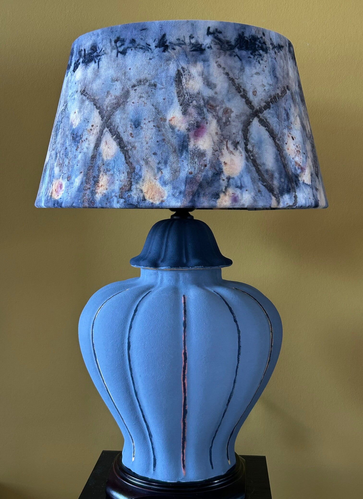 Een oude lamp van de kringloop wordt een hippe eyecatcher wanneer de kap bekleed wordt met een natuurlijk geverfde stof en de voet behandeld wordt met krijtverf. Of je nu alleen een lampenkap wil of een volledige lamp, alles is mogelijk. Je kan kiezen uit de voorraad of vragen naar een lamp op maat met specifieke afmeting en kleur. Of breng je eigen oude lamp of lampenkap mee, ik maak 'm graag weer als nieuw. Geheel duurzaam en circulair natuurlijk. Het effect van de val van het licht door de geprinte stof is verbluffend. Laat je inspireren door de onderstaande voorbeelden.